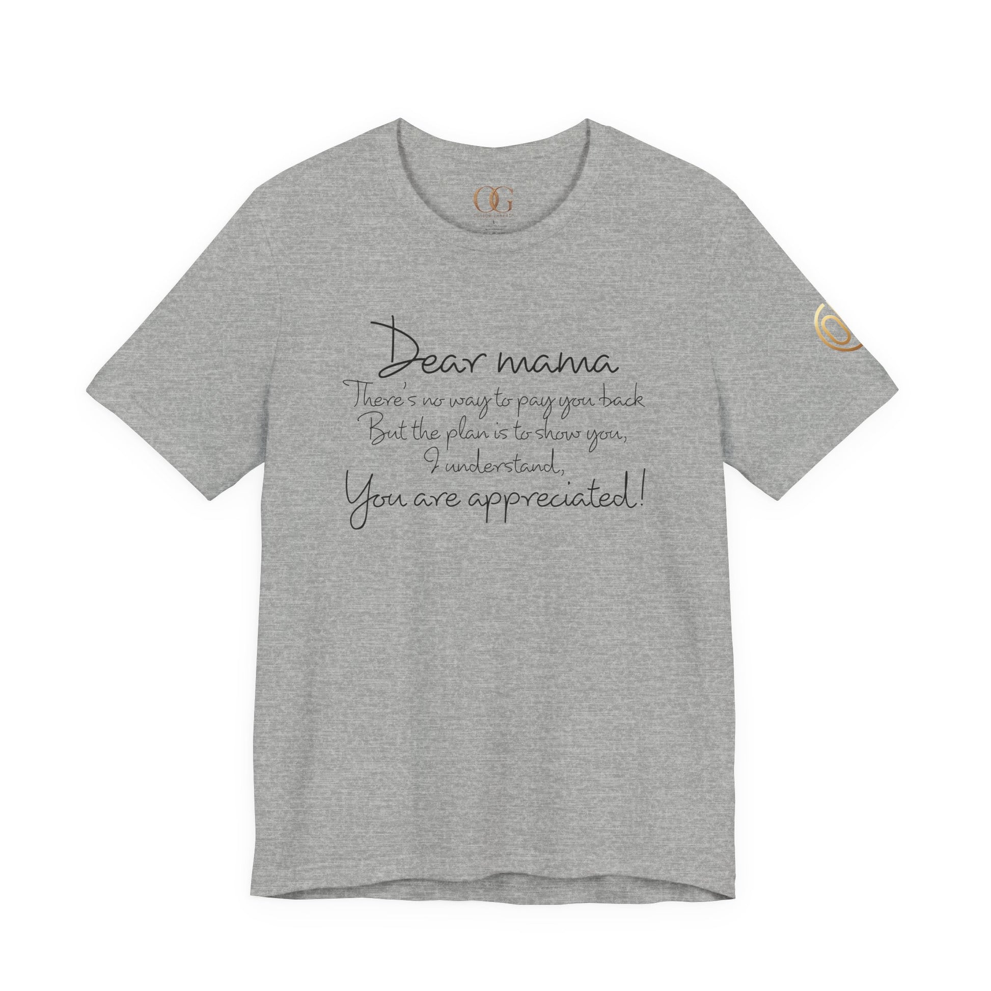 Introducing the perfect addition to your casual wardrobe: this Unisex Jersey Short Sleeve Tee combines comfort with a heartfelt message. The soft, breathable fabric ensures a cozy fit whether you're lounging at home or out and about. With its classic crew neckline and relaxed style, it’s ideal for pairing with jeans or layering under a jacket. Perfect for gifting on Mother's Day, birthdays, or just to show appreciation to the amazing mothers in your life, this tee radiates warmth and thoughtfulness. It’s suitable for anyone looking to express gratitude and love, making it a wonderful choice for family gatherings or casual outings.