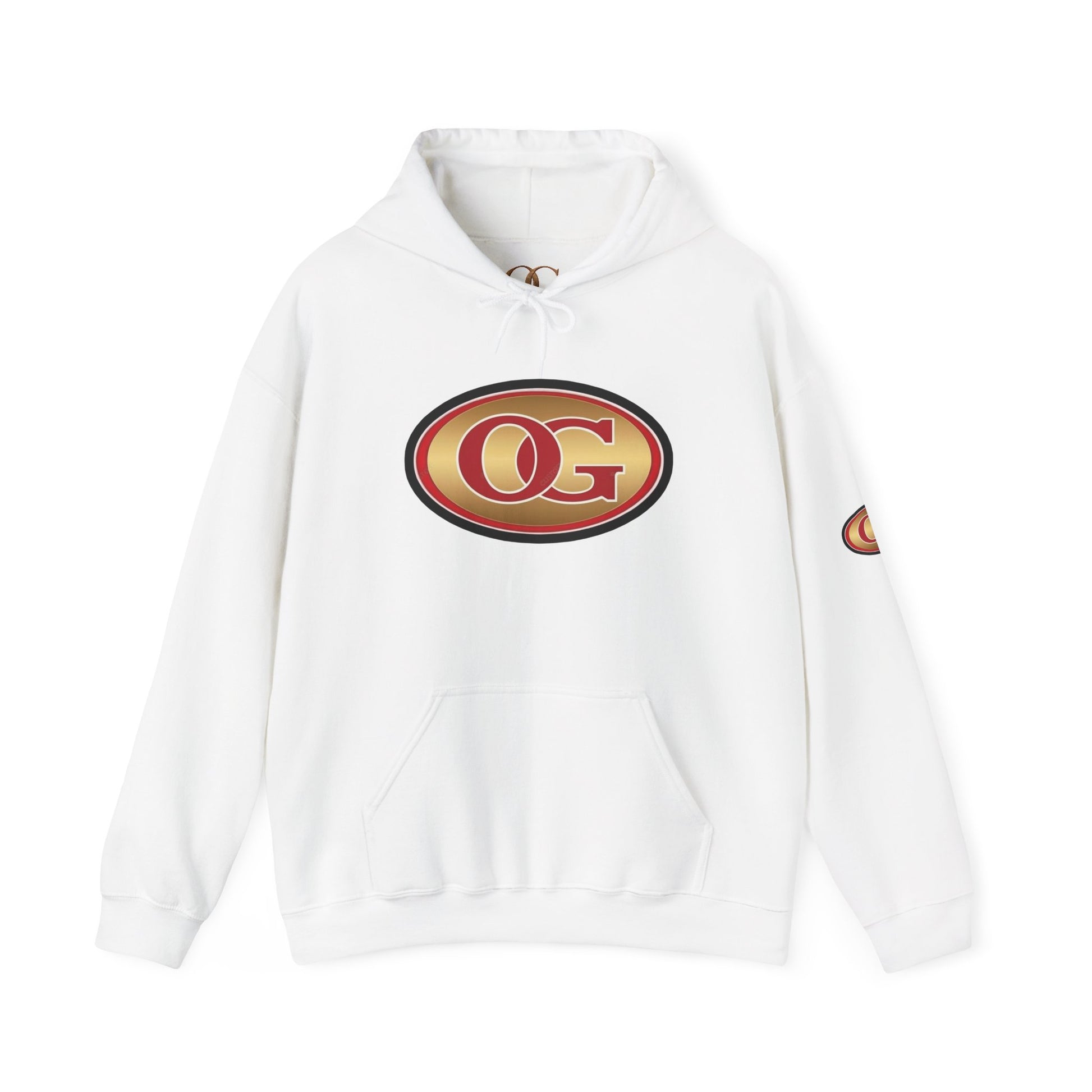 Soft, roomy, and quietly bold — this hooded sweatshirt wears like a trusted companion. The smooth 50/50 cotton-poly blend gives a cozy weight without feeling bulky. A double-lined hood and color-matched drawcord add subtle polish, while the kangaroo pouch keeps your hands warm and your essentials close. The rounded OG emblem on the chest and a matching accent on the sleeve feel vintage and personal, like a worn-in patch from a favorite road trip. Tubular knit construction means a clean, seamless look down the sides, and the tear-away neck label keeps the back of your neck scratch-free. Wear it layered over a tee or under a coat; it settles into everyday life and quietly announces a calm, confident style.